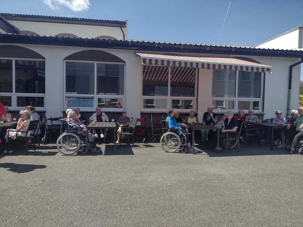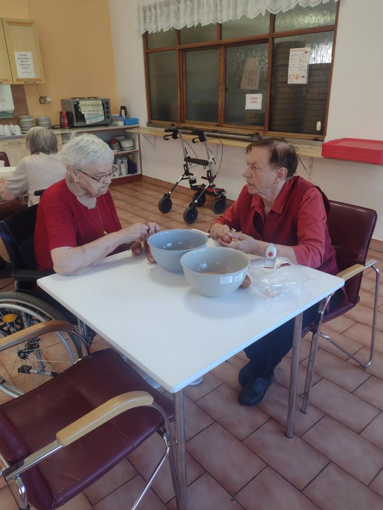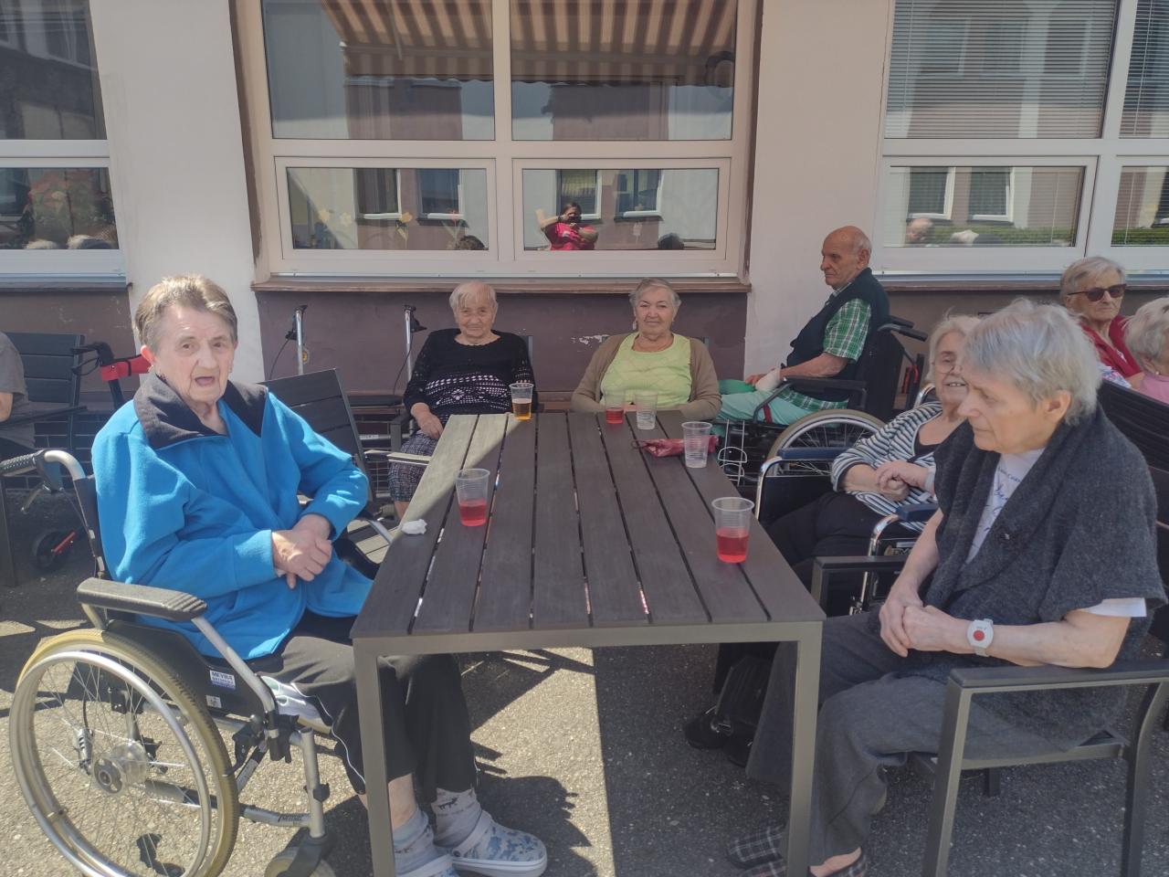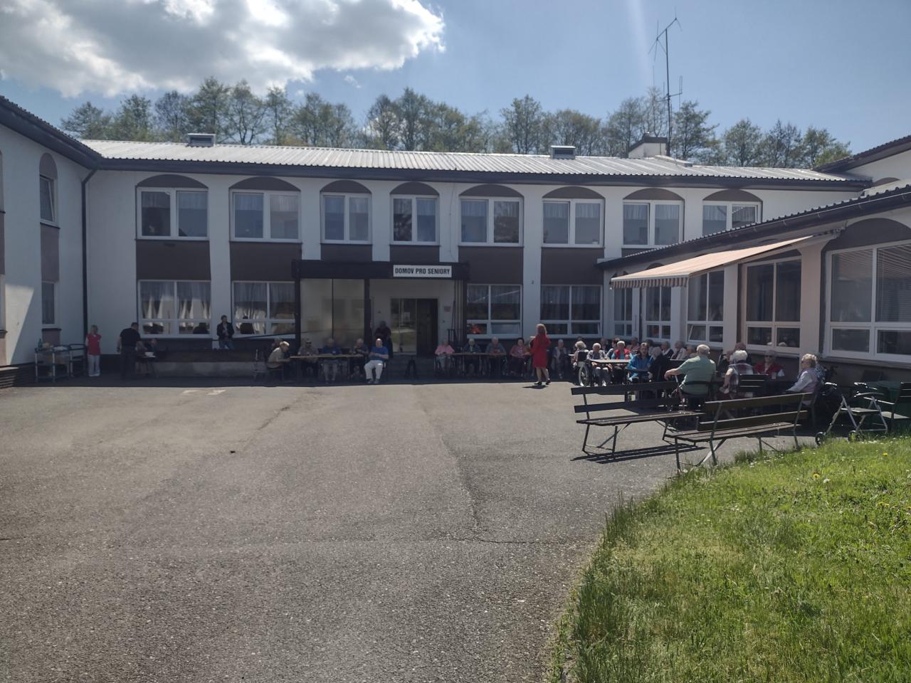 30.dobna se dopoledne za pomoci klientů ozdobila májka, připravily se buřtíky na opékání a odpoledne za krásného počasí jsme všichni společně postavili májku za doprovodu hudby naší velmi oblíbené paní Pospíšilové s harmonikou!